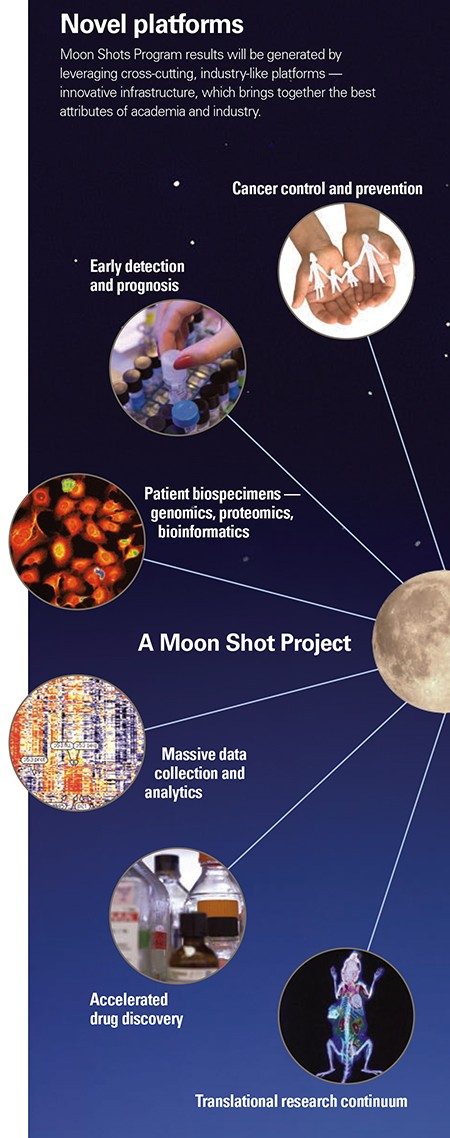 “Progress against cancer has come in small steps, but the time is ripe to lengthen our strides, pick up the pace and gather ourselves to make a giant leap for patients with the type of all-out team effort that fulfilled President Kennedy’s promise only seven years after it was made,” says Ronald DePinho, M.D., president of MD Anderson.